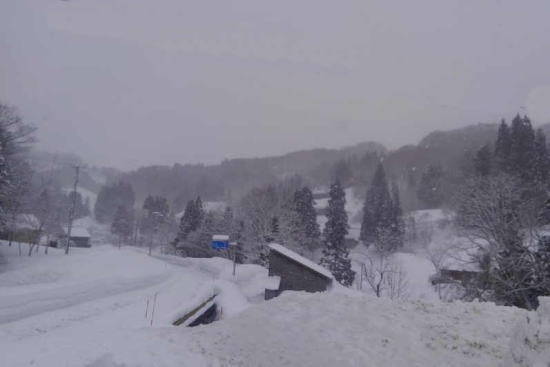 このたびの豪雪は21日から降りはじめ、昨日23日には上石黒で降雪44㎝(積雪280㎝)、板畑では降雪40㎝(積雪380㎝)に達しました。板畑では積雪が、豪雪だった去年の最高積雪410㎝に迫る様子です。幸い、週間天気予報ではこの先は暖気になるようでほっとしているところです。