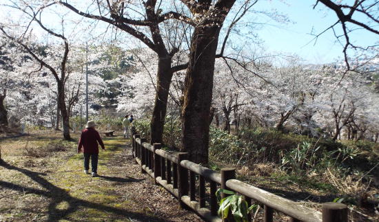 公園内を歩いてみると未だ残雪もあり、枝間から美しい黒姫山が一望できます。公園には数人の花見客の姿も見られました。