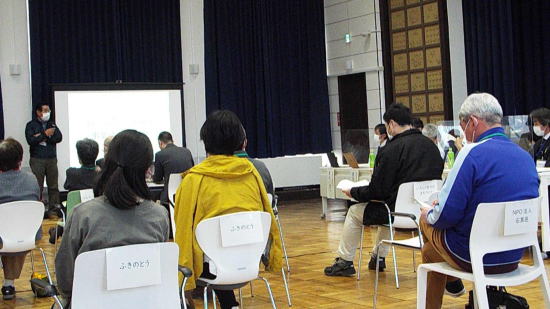 本会は、市の補助金を受けた団体がその成果を発表するものです。「NPО石黒邑」も補助金交付を受け「ブナの森学習会」を活動テーマとして地道な活動を展開してきました。→資料参照