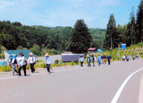 9月4日の秋祭りのみになったのは過疎化が始まった昭和の中頃かと思われます。そのころは現在のコースとは異なり大野集落の共同墓地を通ってつづら折りに上る昔からの街道(松之山街道脇街道と呼ばれた)を通って上ったのでした。しかし、急傾斜の横道は毎年のように雪と共に崩落して修復に手間がかかりました。年々過疎化も進み、ついに管理が困難となり、やむを得ず現在の胸突き八丁の急な坂道に改修したのでした。