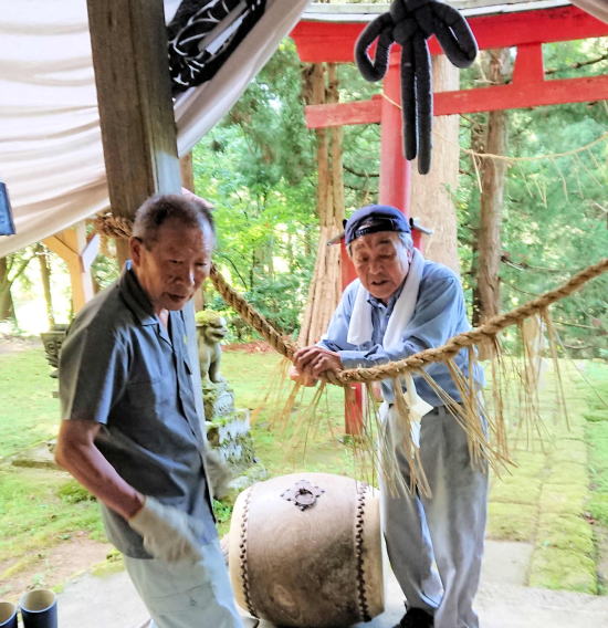 有坂宮司さんを始め、鵜川地区、門出、岡野町、市街地の皆さん、また、この度石黒地区の地域おこし協力隊として赴任された加藤さん、そして報道関係の方からも参加いただき無事祭礼が行われたことは、信者の一人として有り難い事であったと思います。(編集会 大橋寿一郎)