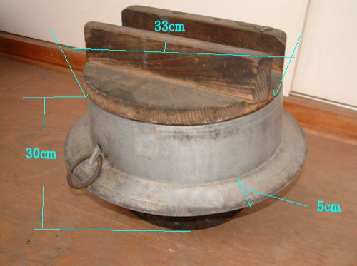 | 敗戦後、ジュラルミン製のツバガマが普及した。鉄製のツバガマに比べ軽いことが好まれた。 原料のジュラルミンは、戦時中に零式艦上戦闘機(ゼロ戦)などの飛行機用資材として住友金属が、海軍航空廠の要請により開発した合金であった。 筆者の家でも購入したが、白銀色の美しいジュラルミン製つば釜は、子供心に何か新しい時代の到来を予感させるものであった。 しかし、筆者には分からなかったが、炊いたお米の味は鉄製の釜の方が美味しかったと聞いている。 ただ、子供であった筆者が憶えているのは鉄製に比べ軽く、縁を叩くと良い音がしたことを憶えている。横に細かい線が入っていたような記憶もあるがどうであろうか。 補説資料→ツバガマ (指導−矢沢清吉) |