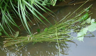 青苧の作り方は、7月頃に刈り取り2、3日水につけておいた後に上皮をはぐ。