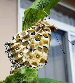 解 説 タテハチョウ科 日本が分布の北限であり、日本では南西諸島、九州、四国、本州南西部で見られる。 本州では1980年代まで近畿地方以西でしか見られなかったが、徐々に生息域が北上し1990年代以降は東海地方から関東地方南部、富山県・新潟県の平野部で観察されるようになった。 2002年には関東地方北部でも目撃報告がある。2006年現在、関東地方北部でもほぼ定着し、普通種になりつつある。さらに2000年には、甲信越地方まで分布を広げている。 はねの開帳約70o。オスは普通の豹紋であるがメスは前ばねの先端部が黒色を帯び中に白い帯がある。(上左写真) 幼虫で越冬し最初は4、5月に発生して以後は連続的に3〜4回発生(多化性)し晩秋まで見られる。幼虫の食草はスミレ科の植物。 ちなみに、メスは 有毒のチョウ「カバマダラ」 に擬態しているとされ、ヒラリヒラリと飛ぶ様子 まで似ていることは興味深い。 名前の由来ははねの端(つま)が黒いことによる。 水平に翅を開いた姿♀ ![]() ![]() 写真2005.10.27大野 ![]() 写真2020.10.2松美町 吸密する姿 ![]() ![]() 写真2005.10.27大野吸蜜する様子 ![]() 写真2020.10.12松美町 柏崎市街地で見られた個体♀ ![]() 写真2017.9 Mituko 豊町 柏崎市街地で見られた個体♀ ![]() 写真 2020.10.2 松美町 柏崎市街地で見られた個体♂ 写真2020.9.27 松美町柏崎市街地で見られた個体♂ 写真2020.9.27 松美町石にとまった横姿-メス ![]() 写真 2020.10.14 松美町 翅裏―メス ![]() 写真 2023.10.6 松美町 メスに近寄るオス ![]() ![]() 写真2020.9.20松美町 春口敏栄2020.11.18に見られた個体 写真2020.11.18松美町 |