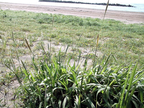 | 暮らしとの関わり 今まで何度か柏崎市街地の裏浜を出かけたがケカモノハシは見かけなかった。 7月17日に大崎在住の阿部さんに案内をしていただき近くの海岸を1時間半ほど歩いた。 ここには市街地裏浜には少ないハマゴウが砂浜に群生し、所々にケカモノハシが見られた。 阿部さんの話によると、ケカモノハシの堅く長い根を使って昔は小形の箒〔ほうき〕を作ったものだという。まじまじとその根を観察するとホウキ黍の果軸に姿も似ているようにも思われた。 今朝(2012.9.14)鯨波海岸で大群生と呼んでいいほどの大きな群生に出会った。→写真 また、蔓延したクズの中にたくさんのケカモノハシが見られたが遠くに根っこを据えたクズとの競合ではケカモノハシが不利であるとも思われるが海水に対する耐性では有利ではなかろうか、などと考えてみた。(下写真) 写真2012.7.17大崎海岸 出穂前から出穂期へ ![]() ![]() 写真2015.6.11東の輪海岸 ![]() ![]() 写真2013.7.6鯨波海岸 穂の出るころ 写真2012.7.17大崎海岸小群生 ![]() 写真2012.9.14鯨波海岸 侵入したクズと競合するケカモノハシ 写真2012.9.14鯨波海岸2本に別れる花穂 写真2013.7.8荒浜海岸粗く強靭な根 ![]() 写真2012.7.17大崎海岸 葉の白毛 ![]() 写真2012.7.17大崎海岸 冬の様子 写真2012.12.17松波海岸真冬の様子 写真2014.1.29松波海岸 |