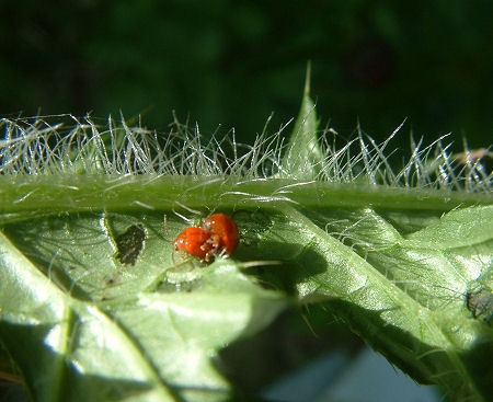 解 説 キク科 北海道をのぞく日本各地に見られる多年草。道ばたなどに多い。 茎の高さは50〜100p、草藪の中では1、5メートル達するものも見られる。 根生葉は花期にはまだ枯れない。羽状に5〜6対に裂け縁にトゲが多い〔下写真〕。上面、下面ともに脈上に毛がある〔左下写真〕。茎中部の葉は互生して葉の基部は茎を抱く(下写真)。 花期は5〜9月。花は上向きに咲き直径4〜5p。花の元の部分には粘りがある。色は紅紫のものが多い。 この花を刺激すると白い花粉を吹き出す。蝶に効率的に花粉を運んでもらうためであろう。自家受粉を避けるため、先に雄花の花粉が出終わる頃に雌花が開き他の花の花粉を受粉する。 名前の由来は諸説あるが、花の美しさに惹かれて触ると棘が刺さり欺かれるという意味りの「アザムク」など何れも棘に関係があるようだ。 つぼみ 写真2009.5.18 落合ノアザミの茎の中 ![]() 写真2009.5.8上石黒 おしべと花粉 ![]() 雄しべは刺激を受けるとすぐに花粉を出す。 冠毛と種子 ![]() ![]() 写真2005.7.4下石黒 茎を抱く葉の縁のトゲ 写真2009.6.11下石黒