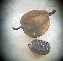 解 説 トウダイグサ科 コニシキソウ同様、北米原産一年草の帰化植物。 茎は淡紅色で直立しあるいは斜上して高さ20〜30pほど。小枝の片側にに毛がある(下写真)。全体にやや水平に伸びて枝はじくざく曲がる(左下写真)。 葉は対生し、短い柄をもち長楕円形で長さ、1.5pほど。裏は白っぽく上半分には鋸歯があり、基部は丸く左右が不揃い(下写真)。葉上面には真っ直ぐに立った毛がある(下写真)。 花期は8〜9月。枝先に数個の小さい赤い花序をつける。総包は倒円すい形で5枚合着して杯状になり、その中に1個の雌花と数個の雄花がある。総包は4裂片があり、腺体と付属体が4個ずつある(左下写真)。 まず、雌花が杯の外へ伸びて6本の花柱を広げ受粉する。受粉した子房は成長して重みで横になる。 そして子房の先から雄花が伸びて花粉を出す。雄花は花粉を出し終わると脱落する(左下写真)。 さく果は3室で平滑(左下写真)。 種子は四角状卵形で暗褐色で2〜3条の横シワがある(下写真)。 名前の由来は大型のニシキソウ 葉の基部の形 写真2010.8.22 田塚小枝の片側の毛 ![]() 写真2010.8.22 田塚 葉上面の立った毛 ![]() 写真2011.8.28 畔屋 開いたばかりの花 ![]() 写真2012.7.24田塚 さく果と種子 ![]() ![]() 写真2012.11.7(採取地田塚) |