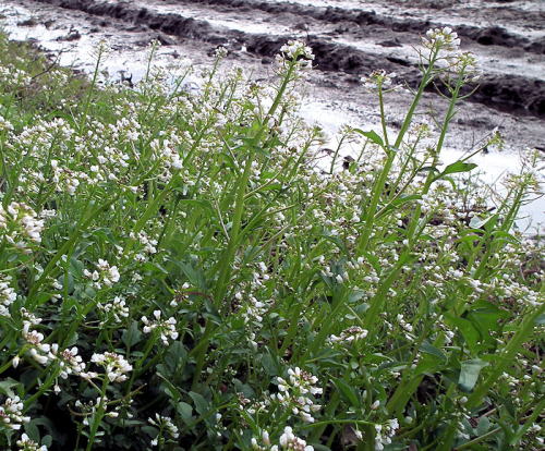 | 暮らしとの関わり 昔から、タネツケバナは、春早くから秋遅くまで田畑に生える害草として憎まれてきた。 しかし半年以上深い雪に覆われる石黒では、他の草が枯れ果ててしまう初冬も青々として生長を続け開花するこの草に、不思議な魅力を感じたものであった。→早春のタネツケバナ 子どもの頃からこんなに小さな草の花と棒状の果実を知っていたのはそんな心情で観察していたからであろう。 そんな訳で沢山のこん棒状の果実をつけるのことから「タネツケバナ→種付け花」と勝手に解釈して疑わなかったが、この歳になって「種(籾)浸け花」であることを知って驚いた。 しかし、考えてみれば種をつけるのはほとんどの野草に共通のことであり根拠のないことである。 同様な誤りに気付かなかったものに「ミソハギ→溝ハギ」がある。お陰で、「草の名前に止まらず、人間を含めた動物にたいしても、自分は些細な根拠から様々な誤解の虜になっているのではないか」という自戒を念を得たような気がする。 なお、牧野図鑑には「オオバタネツケバナ」、「オオケタネツケバナ」などの近似種が掲載されているが本欄では区別していない。 しかし、調べて見ると、ミチタネツケバナが最近(1970年代)に欧州から渡来し急速に日本各地に広がっているようだ。 今後注意して観察してみたい。新参者を見分けることが出来ないでは在来種に対して申し訳ない。 〇ミチタネツケバナの特徴は、 @乾燥したところに生える。 A雄しべは4本。 B花は、平開しないでまとまって咲く C茎は無毛 。 D茎葉は細長く少ない。 E果実の時期にも根上葉がある。 F果実は、茎に沿うように直上する。 (写真上・右下2005.5.12上石黒 右上2005.4.5下石黒) 早春から開花する ![]() 写真 2019.3.6 新田畑 ![]() 写真 2016.3.11 西中通 市街地のタネツケバナ 写真 2020.4.1 新田畑 背景山−黒姫花期のころ ![]() 写真 2006.5.18 上石黒 早春の田の畔で開花 ![]() 写真 2011.5.12 上石黒 葉の上部から基部の葉の形 写真 2011.5.12 上石黒放棄田に見事に群生したタネツケバナ ![]() 写真 2009.5.11 上石黒−記録的小雪 果実期 ![]() 写真 2009.5.19 下石黒 果実期 ![]() 写真 2012.5.10 下石黒 ※果実の付き方からミチタネツケバナか (下写真も) 種子散布後の個体 ![]() 写真 2009.5.28上石黒−記録的小雪 |