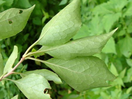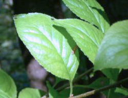 解 説 モチノキ科 日本全土に分布する落葉高木。高さ10mに達する。雌雄異株。 幹は灰白色で外皮が薄く爪ではがすと緑色の内皮が現れる。〔下写真・名前の由来〕 葉は互生し薄く裏面の脈状には毛が多い(下写真)。長さ4〜7p、幅2.5〜3.5p。 花は5〜6月に開き、色は緑白色。雄花は球状に多数集まってつき雌花は数個つく、雌花には退化した4〜5個の雄しべがある。〔写真上−雄花〕 果実は鮮やかな紅色で球形。(左下写真) 材は加工が容易で狂いが少なく玩具などに利用される。 また、葉は三重県では弘法茶と呼んで昔から茶の代用とされてきた。また、若芽を食べる地方もあるという。 アオハダの緑色の内皮 ![]() 写真2007.10.14寄合 葉の形と表裏 ![]() 写真2015.8.25畔屋 葉裏脈上の軟毛 ![]() ![]() 写真2007.10.14寄合 果実のつき方 ![]() 写真2015.8.25畔屋 果実と種子 ![]() 写真2007.10.14寄合 冬芽と葉痕 ![]() 写真2015.2.5畔屋 |
