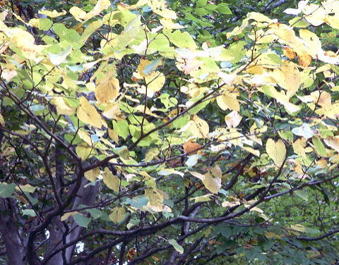 解 説 シナノキ科 東北地方から北海道にかけて自生する落葉高木。 高さ20mにも達し樹皮は灰朱褐色。若枝には毛が密生する。 葉は、互生し柄があり大形で長さ10〜15p、幅8〜12pほどの円形で先が急にとがる。葉の基部は多少斜めにゆがんだ心臓形、あるいは切り形、葉の縁には大きな鋸歯がある。裏面には細かい毛が密生しているために白色がかってみえる(下写真)。まれに、この毛がなくて裏面も緑色のものがあるがモイワボダイジュという。 花期は6〜7月。花は長い柄をもった房状の花序で葉のつけ根につき、下向きで狭い舌状の包葉がある(左下写真)。 小花は淡黄色で香りがあり、ガク片、花弁ともに5個、多数の雄しべと退化雄しべ5個、雌しべ1個をもつ。 果実〔核果〕はやや球形で5稜があり褐色の毛を密生する。 釈迦が悟りを開いた時の伝説に出てくる菩提樹は別種(クワ科)。 名前の由来は菩提樹に葉の形が似ていて大形であることによる。 芽吹き前 ![]() 撮影日2011.4.21上石黒 毛の密集した若葉 ![]() 撮影日2011.4.21寄合 オオバボダイジュの葉の裏表 ![]() 撮影日2006.7.9上石黒 花序の出始め ![]() 撮影日2012.5.5上石黒 花 ![]() 撮影日2006.7.9上石黒 苞葉の付け根 撮影日2013.8.41下石黒青いころの果実 撮影日2013.8.41下石黒果実期 撮影日2018.9.20下石黒樹皮(上は若木〜老木) ![]() ![]() ![]() 写真2007.5.18 下石黒 インドボダイジュの葉 ![]() 2006.12 筆者家族が押し葉にしてインドより持ち帰ったもの |