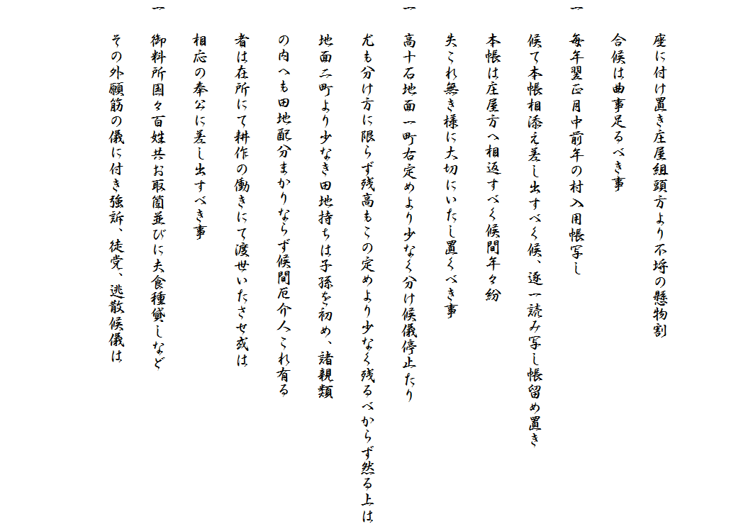 〇五人組 〇小百姓 〇御法度 〇趣 〇下人 〇儀 |