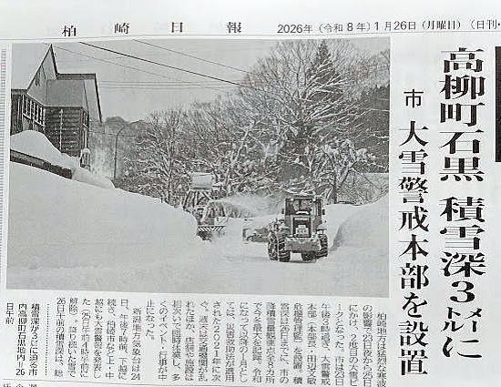 今寒波による積雪、警戒本部設置を報じる柏崎日報 |